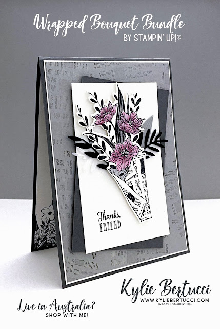Here is my card - I used the stunning Basic Black, Basic Grey, Smoky Slate, Whisper White and Rococo Rose. WOW! Love this combo! It really helps those flowers to POP.